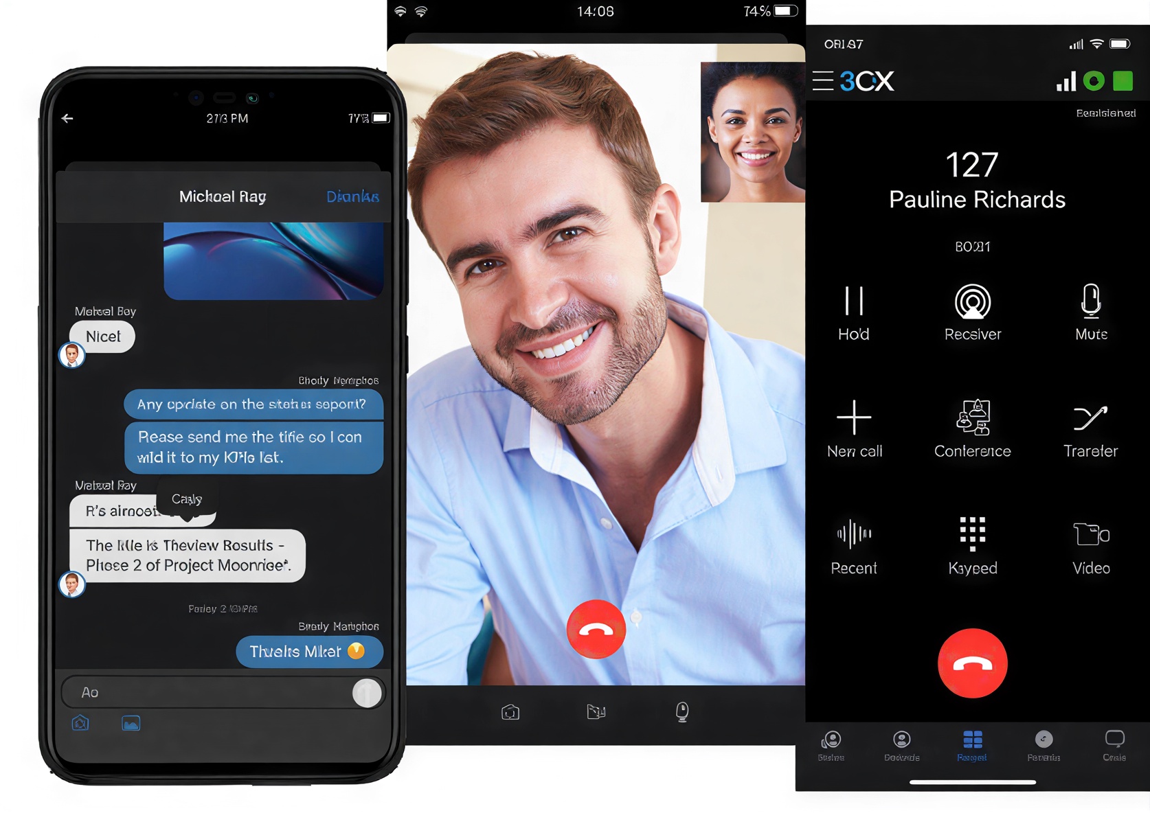With 3CX, you can take your extension wherever you go. With apps for Android and iOS, softphone for Windows, WebRTC softphone and clientless web conferencing, you are guaranteed to be kept in the loop, always and everywhere. Customers can instantly reach you directly from your website with the 3CX Live Chat & Talk plugin.